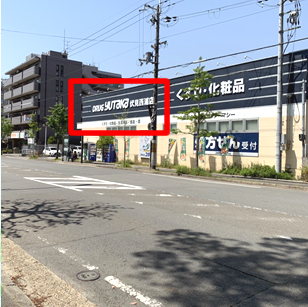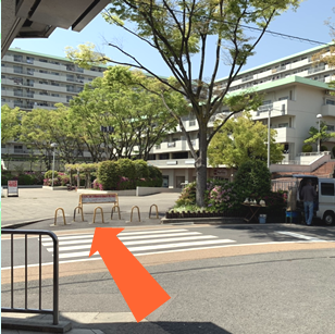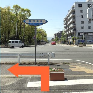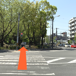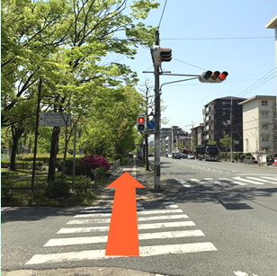 左側曲がってすぐの横断歩道を渡る。