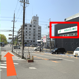 右手に関西みらい銀行あり。そのまま直進する。