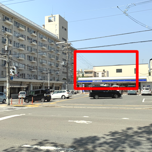 一つ目の交差点右手前方のマンション一階にケーキ屋さんあり