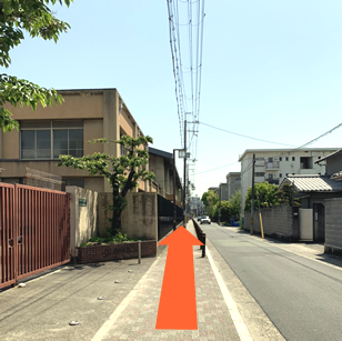 左手の横断歩道渡り直進する。