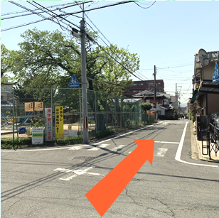 一つ目の交差点左側に児童公園あり。そのまま直進する。