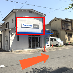 そのまま進むと、左側に電気屋さんあり。