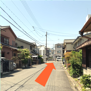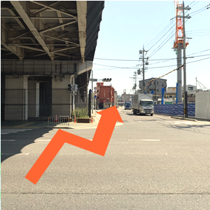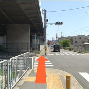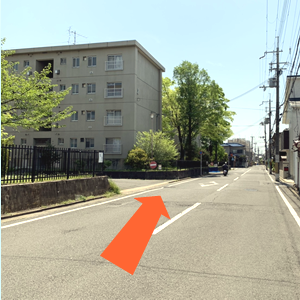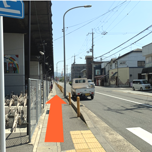 目の前の横断歩道は渡らずに左側を道なりに真っ直ぐ直進する。