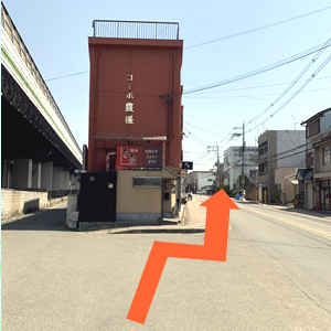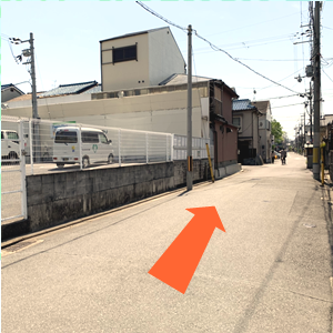 真っ直ぐ進んで建物の右側を道なりに進む。