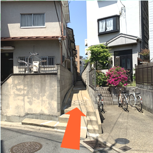 右手に見落としそうな小さな階段あり。奥まった長屋あり。勇気を出して入ってみよう!